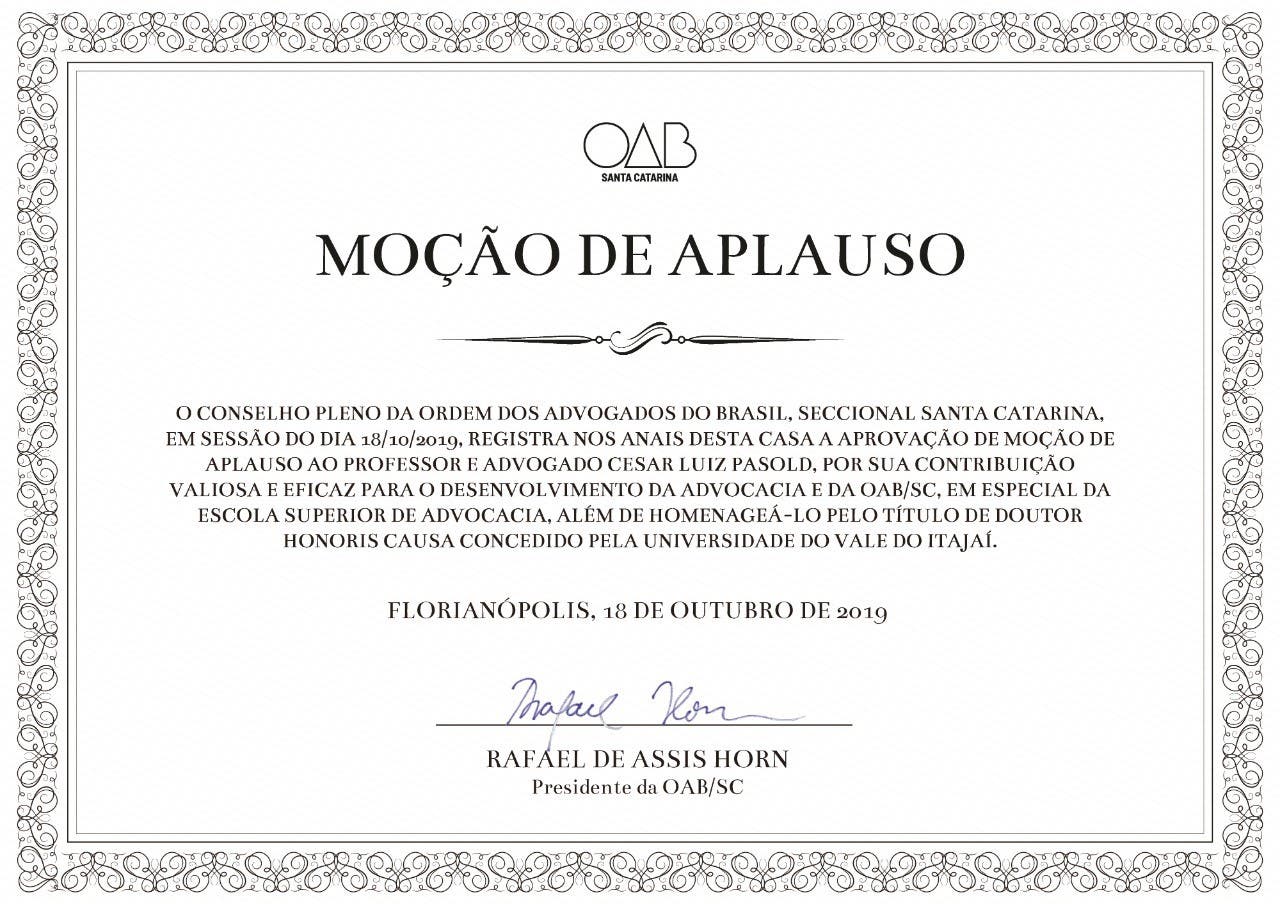 Aplausos ao Dr. Cesar Luiz Pasold