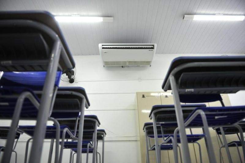 Com os termômetros beirando a casa dos 40ºC quase todos os dias, o ar-condicionado tornou-se item indispensável para manter a concentração das crianças dentro da sala de aula.
