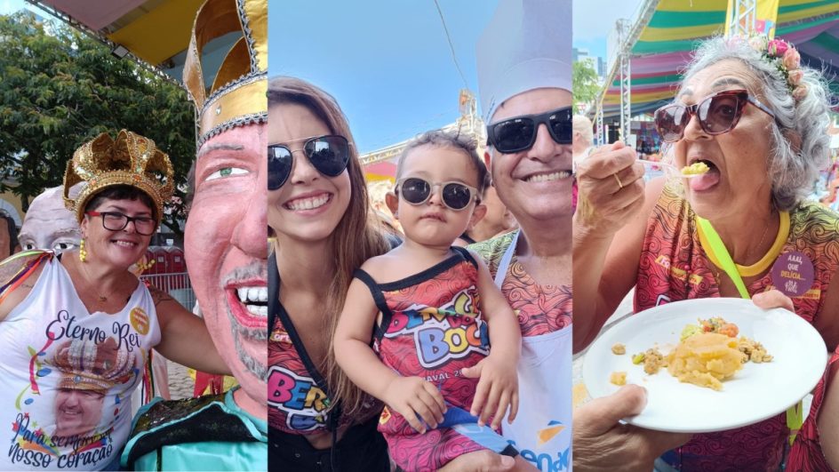 Na festa mais democrática da cidade, criança também tem vez. Ainda mais se estiver fantasiado e no colo da mãe. Foi o caso do pequeno Vicente da Cunha Gaio Teixeira, de um ano e cinco meses. O todo coruja avô, o professor Felipe Augusto Teixeira, não parava de babar: