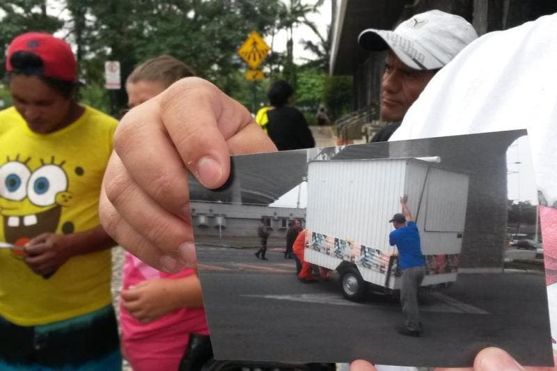(Equipamentos dos vendedores ambulantes foram danificados durante a apreensão)