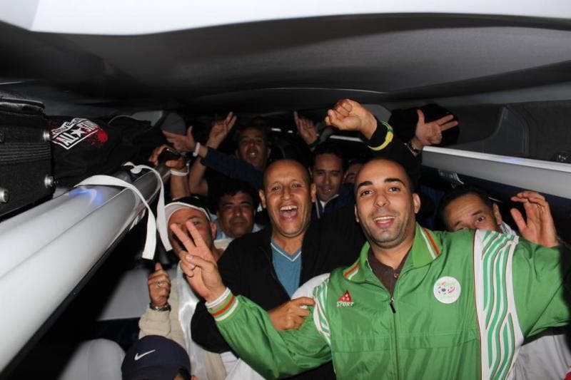 Os primeiros de 2,1 mil argelinos chegaram na noite desta quinta-feira a Balneário Camboriú. Muito animados mesmo após a longa viagem desde São Paulo, os torcedores se divertiram com a recepção da cidade catarinense e entraram na brincadeira. Cantaram, sambaram e tiraram muitas fotos. Na noite de hoje são esperados 22 ônibus e outros 28 devem chegar até o dia 23 de junho. Os argelinos ficam em Balneário Camboriú até o dia 26 deste mês.