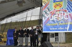 Depois de quatro anos de espera, uma cerimônia marcou o início das obras do campus da UFSC Joinville. Na tarde desta sexta-feira, várias autoridades políticas e do meio acadêmico estiveram no evento realizado no terreno da universidade, que fica às margens da BR-101.