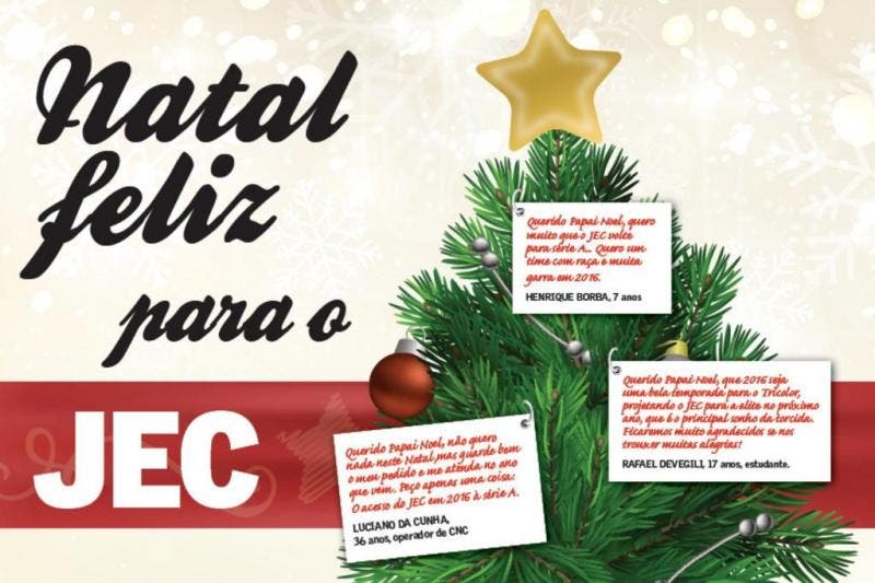 Querido Papai Noel, que 2016 seja uma bela temporada para o Tricolor, projetando o JEC para a elite no próximo ano, que é o principal sonho da torcida. Ficaremos muito agradecidos se nos trouxer muitas alegrias!