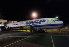 Uma cena inusitada foi registrada na madrugada desta sexta-feira nas ruas da capital paulista. Um avião da extinta companhia aérea Vasp, que foi arrematado por R$ 133 mil em um leilão, foi transportado rumo a Araraquara, interior de São Paulo.