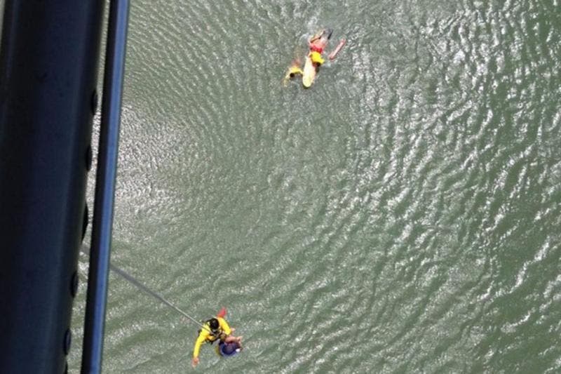 Havia dois bombeiros salva-vidas com pranchas indo ao encontro do surfista, mas a equipe do Águia percebeu que eles levariam muito tempo para atravessar a arrebentação e auxiliou no resgate.