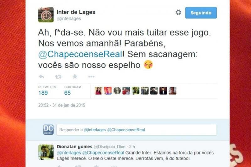 O Inter de Lages pode ter perdido de goleada a partida para a Chapecoense, mas o time conquistou a internet em Santa Catarina. Tudo isso por causa do Twitter oficial do clube. Com tiradas engraçadas, o perfil leva o futebol menos a sério e consegue agradar até quem não é torcedor do Colorado da Serra.