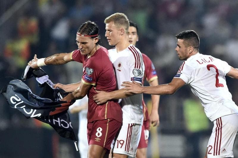 A confusão começou quando um drone, espécie de helicóptero guiado por controle remoto, sobrevoou o estádio puxando uma bandeira da Albânia, que foi arrancada pelo meia sérvio Mitrovic. Os jogadores albaneses não gostaram da atitude do adversário e partiram para cima do jogador, o que resultou numa confusão generalizada entre os atletas das duas seleções e alguns torcedores que invadiram o campo.