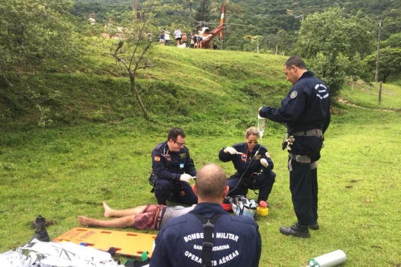 O Corpo de Bombeiros Militar foi acionado para atender a ocorrência por volta das 16h15min e enviou a equipe do helicóptero Arcanjo pela emergência do caso e difícil acesso ao local. Segundo a guarnição, eles utilizaram a técnica do triângulo de resgate: um tripulante desceu da aeronave de rapel e localizou a vítima, preparando-a para ser içada até um local próximo à praia.