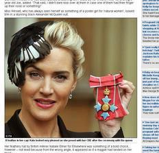 Na última terça-feira, a atriz Kate Winslet, 37 anos, bastante elogiada entre as atrizes de sua geração, recebeu das mãos da Rainha Elizabeth II o Commander of the Most Excellent Order of the British Empire (CBE, na sigla em inglês) por seu serviço prestado ao Drama. O título da Ordem é dado a pessoas que realizam um serviço para a comunidade de forma responsável, e que é excelente em seu domínio, ou trabalho que seja exemplo para outros. “Foi uma grande honra atender à Rainha, e foi a oportunidade de conhecê-la”, disse Kate, segundo o Daily Mail.