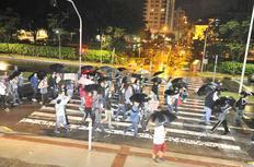 Após acalmar os ânimos, o grupo seguiu em caminhada pela avenida Hermann Augusto Lepper. Viaturas da Polícia Militar e do Ittran acompanharam a passeata. Nas travessas principais, o grupo parou o trânsito por poucos minutos. Ao passar pelo Fórum, ecoaram algumas vaias. O mesmo aconteceu em frente à Câmara de Vereadores, onde já havia uma aglomeração de cem manifestantes.