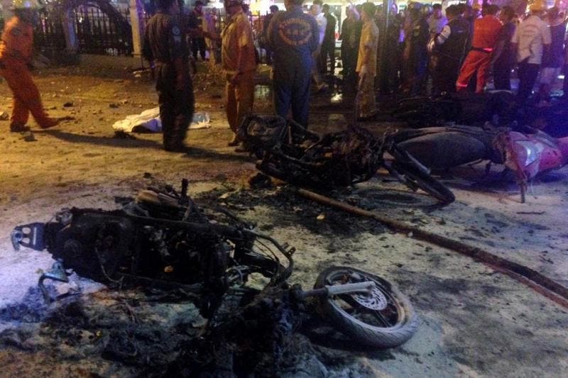 O ministro da Defesa, Prawit Wongsuwong – um ex-general considerado um dos autores do golpe -, afirmou que o atentado, lançado com uma “bomba de TNT”, tinha como alvo “os estrangeiros, para assim prejudicar o turismo e a economia” da Tailândia. O ex-primeiro-ministro Thaksin Shinawatra, exilado e irmão de Yingluck, está no epicentro da divisão política.