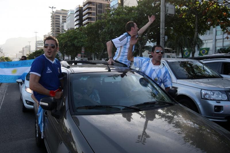 A polícia dispersou com gás de pimenta um grupo de torcedores argentinos que tentou fechar uma das pistas da Avenida Atlântica, na Praia de Copacabana, na tarde deste sábado. Cerca de 1.500 argentinos se reuniram na orla por volta das 16h. Vestidos com as camisas da sua seleção, os torcedores fizeram batucada e gritavam provocações, como a que dizia “Maradona é melhor do que Pelé”, enquanto caminhavam pelo calçadão.