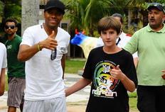 As celebridades continuam chegando em Florianópolis. Inclusive as do esporte. Na tarde desta segunda-feira foi a vez de o atacante do Milan, o craque Robinho, desembarcar na Ilha.