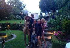 Em uma foto publicada no twitter de Emma na manhã desta segunda-feira (acima), os cinco aparecem posando em um bonito jardim, já no raiar do dia. “Festa até o amanhecer e a Mel ainda está com a roupa do show”, escreveu Emma.