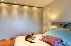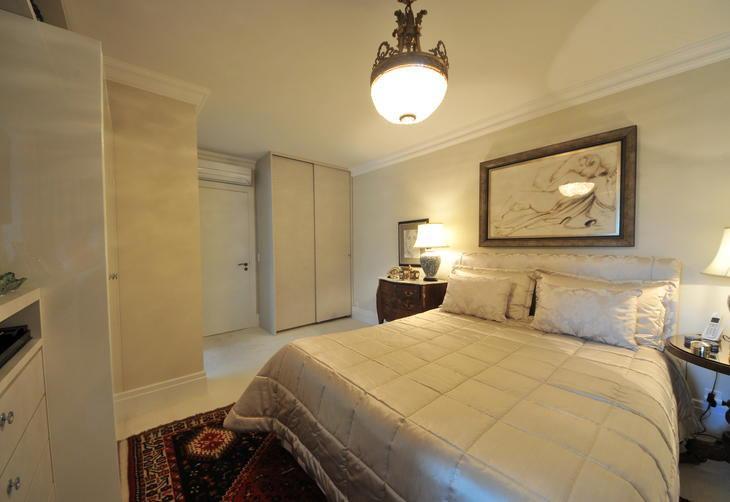 Personalidade sofisticada impressa em detalhes de suíte reflete o perfil da dona, do armário à cortina