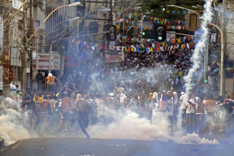 Manifestantes e polícia entram em novo confronto após o início de Brasil e México no Castelão