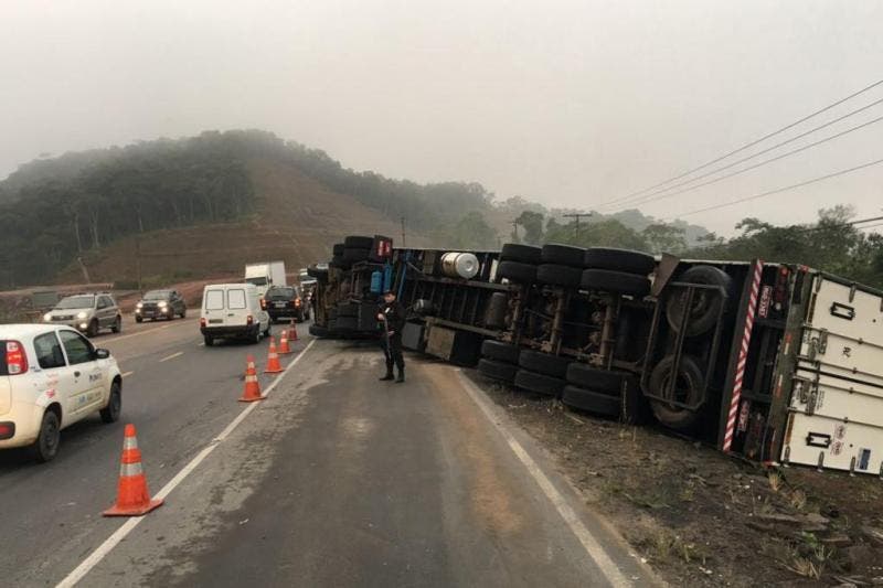 Carreta tombada na BR-470 causa lentidão em Gaspar