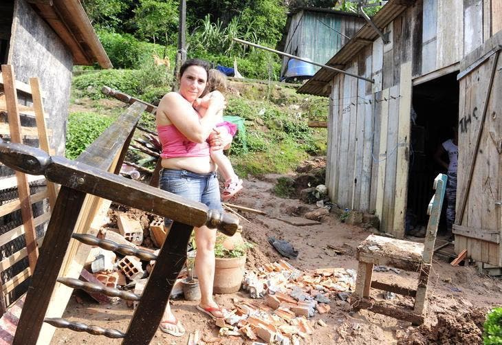 Família une forças para reconstruir pela segunda vez parte da casa destruída pela chuva, em Blumenau