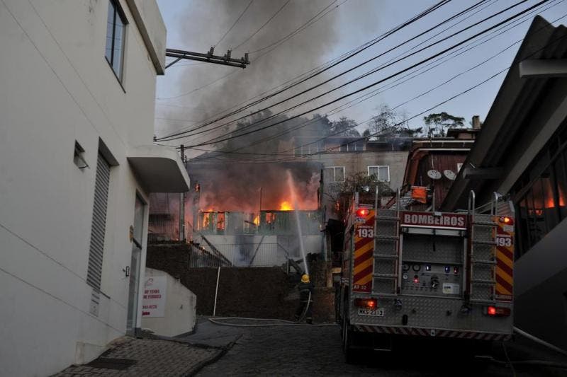 Bombeiros trabalham por duas horas para combater incêndio no bairro Água Verde em Blumenau