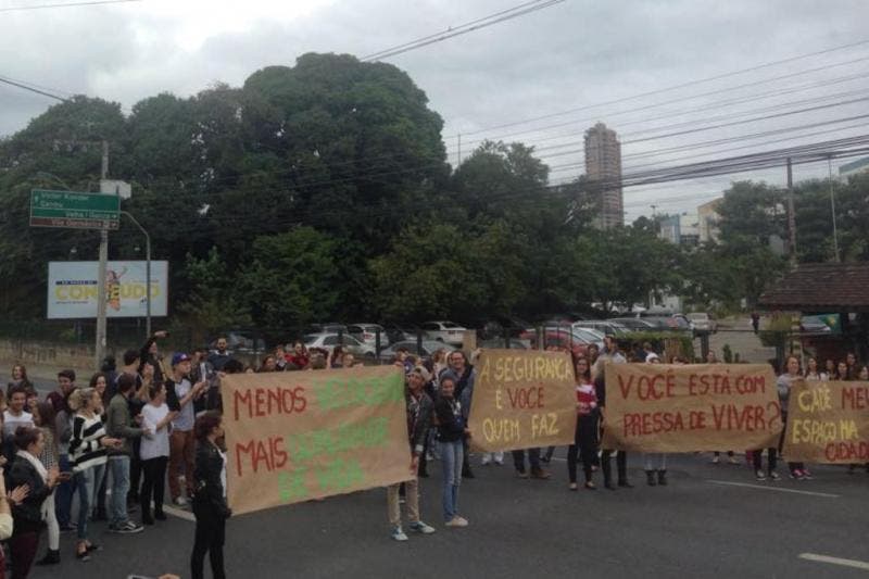 Acadêmicos e professores fazem protesto em defesa de trânsito mais humano em Blumenau