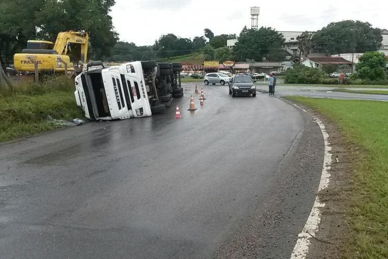 Caminhão tomba e deixa trânsito lento na BR-470, em Blumenau