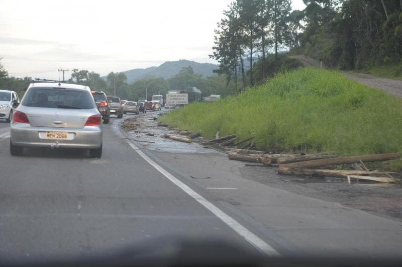 Batida entre duas carretas deixa trânsito lento na BR-470 entre Gaspar e Blumenau