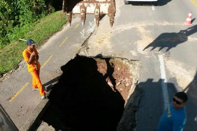 Sesur conclui reparo em buraco de 3,8 metros de profundidade no bairro Ponta Aguda, em Blumenau