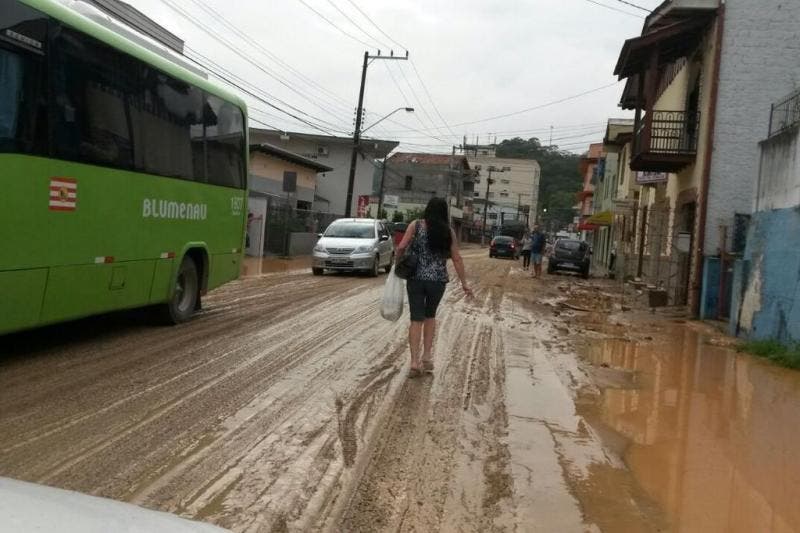 Após temporal, ruas atingidas amanhecem com lama e água acumulada em Blumenau