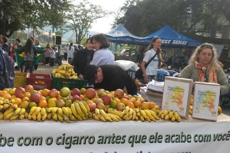 Campanha na Praça Doutor Blumenau alerta para malefícios do cigarro