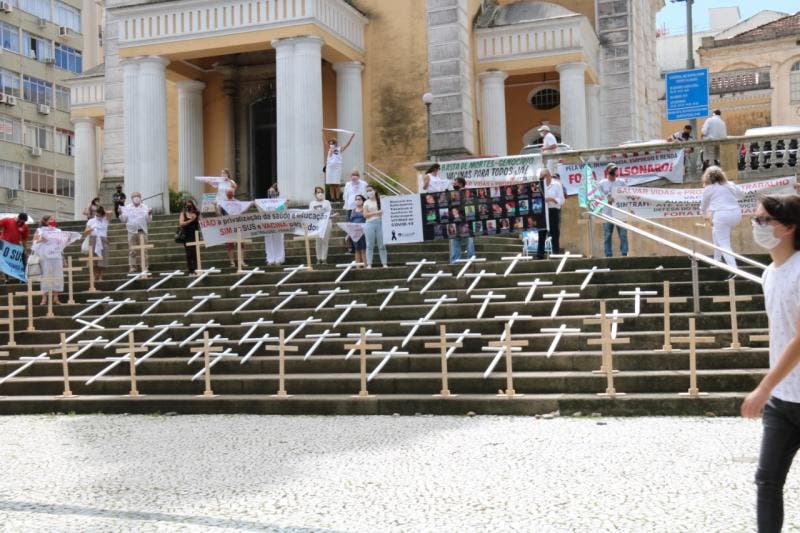 Profissionais da saúde fazem ato por vacinas e em defesa do SUS em Florianópolis