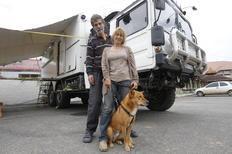 Casal roda pelo mundo em caminhão de guerra