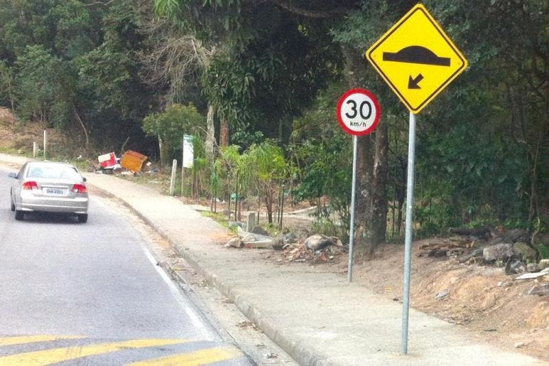 Mário Motta: placa é colocada no meio da calçada no Maciço do Morro da Cruz, em Florianópolis