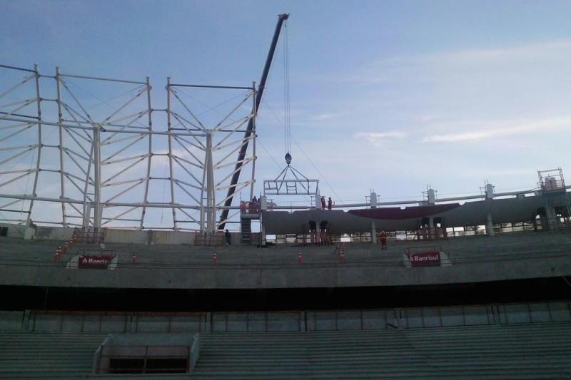 Foto: estrutura metálica do primeiro skybox é instalada no Beira-Rio