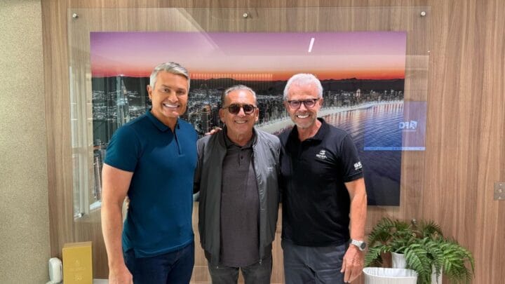 Galvão Bueno conhece em Balneário Camboriú projeto de arranha-céu que homenageia Senna