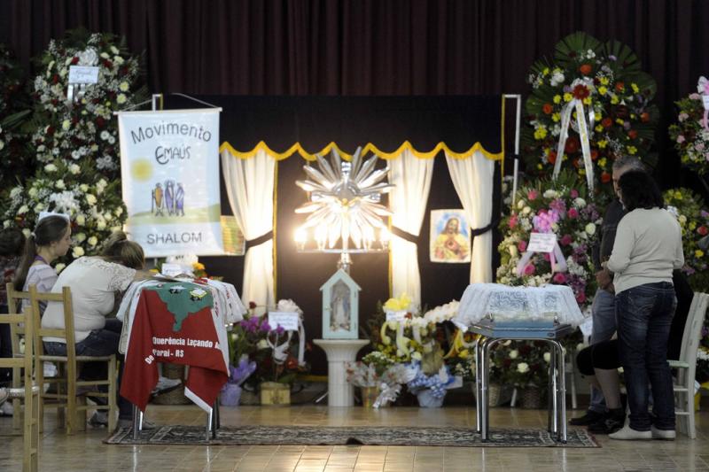 Centenas de pessoas recebem Roger e Susiele, em velório no Salão Paroquial de Paraí