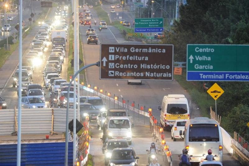 Pancho: Novas lombadas físicas na Via Expressa de Blumenau provocam filas