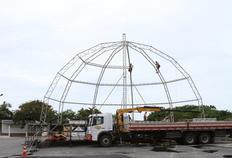 Palco dos shows nacionais é montado na Vila da Regata em Itajaí