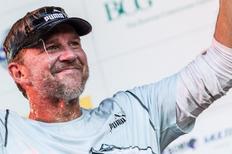 Capitão do barco norte-americano Puma comemora com cerveja gelada